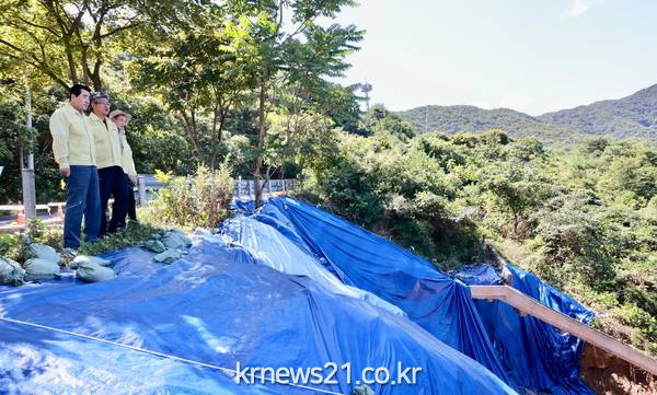 청라터널 사면 붕괴지를 점검한 김 시장은 “지난 집중호우 때 취약점을 보인 곳이기 때문에 더욱 세밀한 점검이 필요하다”라며 “피해 예방을 위해 필요한 모든 조치를 해주기를 바란다”라고 지시했다.
