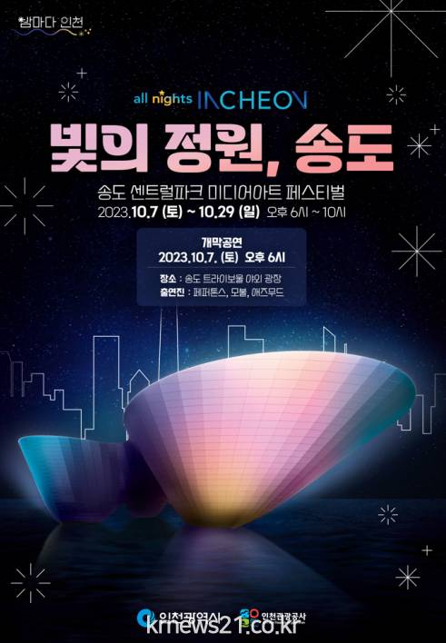 인천광역시(시장 유정복)와 인천관광공사(사장 백현)는 송도 센트럴파크의 야경을 화려하게 수놓을 「빛의 정원, 송도(all nights INCHEON 페스티벌)」을 10월 7일 오후 6시 트라이보울 야외광장에서 펼쳐질 가을밤 음악공연을 시작으로 선보인다고 밝혔다. 이번 행사는 10월 7일(토)부터 10월 29일(일), 오후 6시부터 10시까지 이어진다.