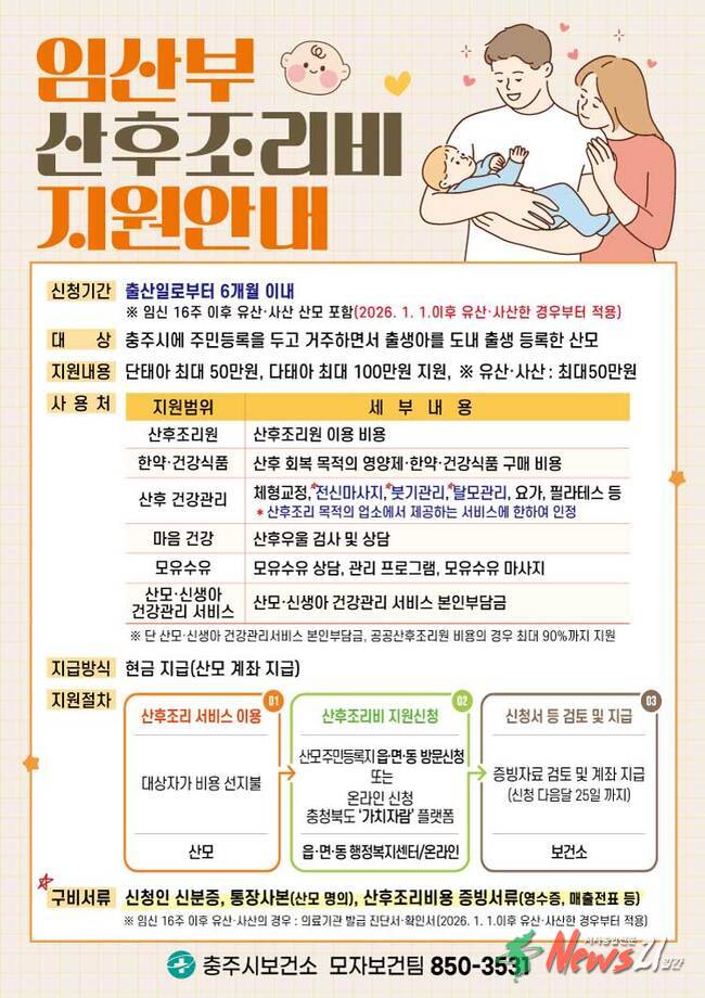 충주시, 산후조리비 지원대상 확대 김민수 2026-01-16 11:23:28