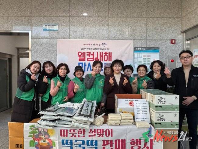 원주시 무실동새마을부녀회(회장 최연숙)는 설 명절을 맞아 지난 9일 무실동 행정복지센터에서 ‘설맞이 떡 판매행사’를 열었다.이번 행사는 새해를 맞아 지역 주민들과 따뜻한 정을 나누고, 나눔 문화를 실천하기 위해 마련됐으며, 많은 주민의 호응을 얻었다.이날 행사에서 발생한 수익금은 관내 어려운 이웃을 돕는 데 사용된다. 특히 취약계층 지원 등 지역 내 복지 증진을 위한 뜻깊은 나눔으로 이어질 예정이다.최연숙 부녀회장은 “설 명절을 앞두고 이웃들에게 도움이 되길 바라는 마음으로 행사를 준비했다”라며, “앞으로도 지역사회와 함께하는 다양한 봉사와 나눔 활동을 지속적으로 펼치겠다”라고 전했다.