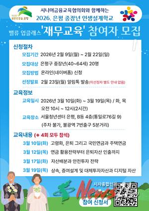 서울 은평구는 중장년층의 안정적인 인생 2막 준비를 지원하기 위해 2026년 ‘은평 중장년 인생설계학교’ 재무·직업설계 교육 참여자를 모집한다고 밝혔다.