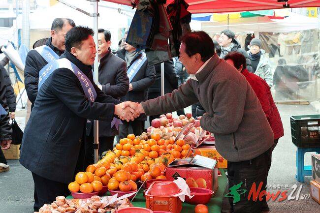 서 군수는 시장을 돌며 지역 농특산물과 명절 용품을 구입하며 시장 활성화에 나섰다. 이날 구입한 물품은 공직선거법을 준수해 관내 중증장애인 기초생활수급 가구에 전달할 예정이다.