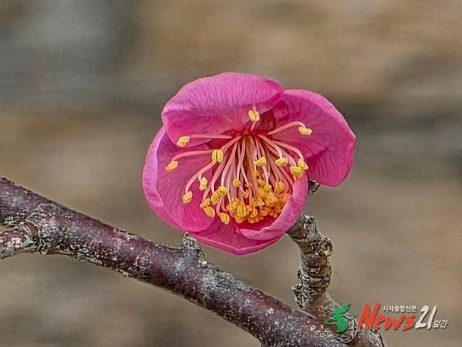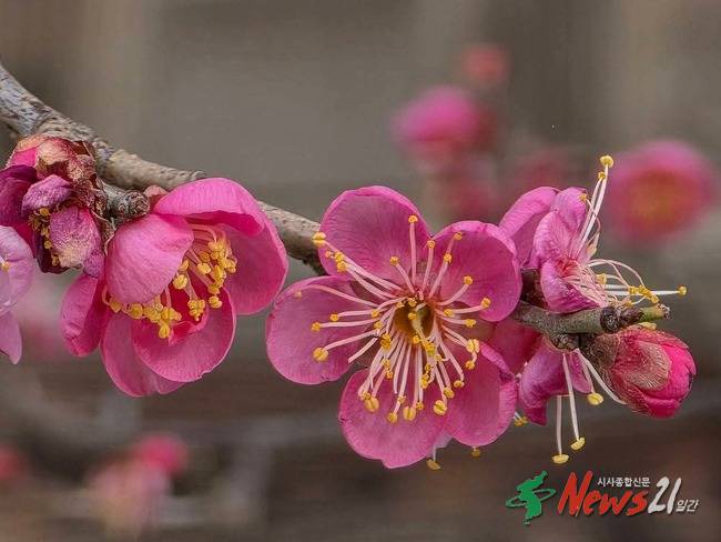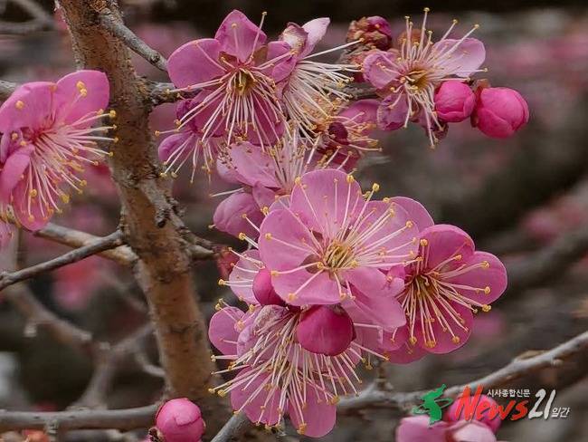 자장매는 매화 품종 중 하나로, 자줏빛 꽃이 특징이다.