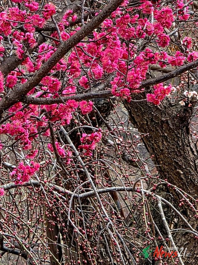 홍매화는 매화나무의 한 종류로, 붉은색 꽃을 피우는 것이 특징인 낙엽 활엽 소교목이다.