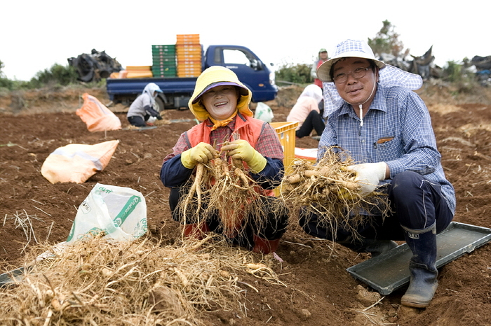 해남군(군수 박철환)에 따르면 지난 9월2일 산이면과 화산면 안정마을을 시작으로 본격적인 수확에 들어간 해남 인삼은 오는 11월 중순까지 수확될 예정이다.