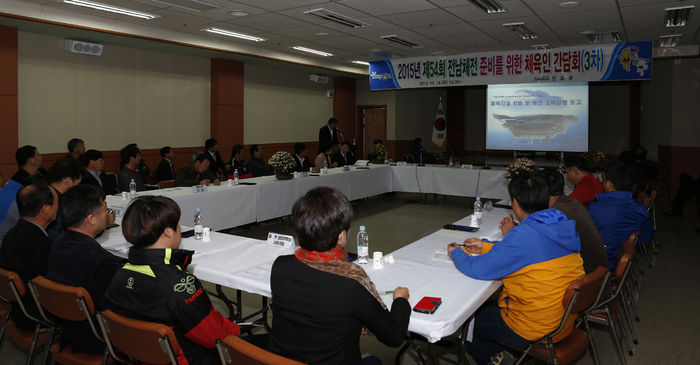 군은 최근 간담회를 개최하고 2015년 제54회 전라남도 체육대회에 필요한 주차장?숙박?체육시설과 환경정비계획, 메인 스타디움으로 활용되는 공설 운동장 진입로 확장 등의 현안을 논의했다.