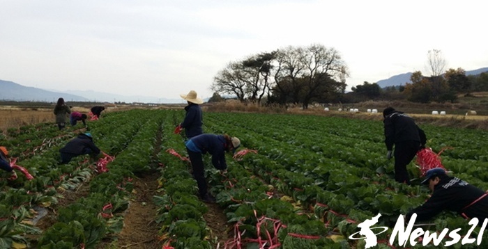 포항시 친환경농정과는 14일 기계면 고지리에 소재한 배추밭을 찾아 배추묶기 일손돕기를 실시했다.