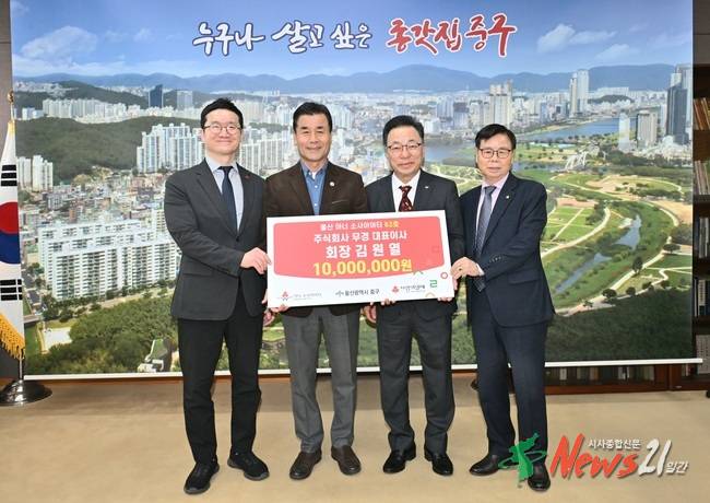 (뉴스21일간/노유림기자)=법무부 청소년 범죄예방 울산지역협의회 한우리위원회(위원장 김원열)가 10월 31일 오후 3시 중구청 구청장실을 찾아 울산사회복지공동모금회를 통해 중구가족센터에 후원금 1,000만 원을 전달했다.     이번 전달식에는 김영길 중구청장과 김원열 법무부 청소년 범죄예방 울산지역협의회 한우리위원회 위원장, 서선...