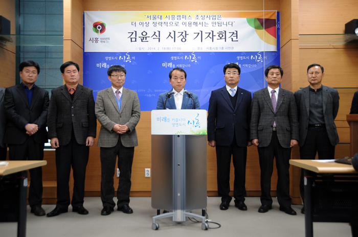 그럼에도 불구하고 어제(17일) 바로 이 자리에서 새누리당 소속 시의원님들이 제가 “서울대 시흥캠퍼스 조성사업을 선거에 또다시 정략적으로 이용하려한다”는 기자회견을 개최하고, 지난 4일 시의회에 제출한 사업협약 체결 동의안을 “물리적인 충돌까지 감수”하며 막겠다는 입장을 밝혔습니다.