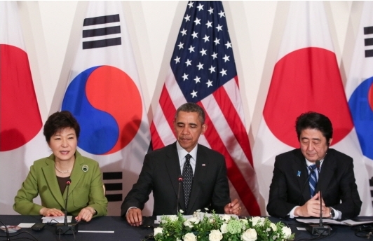 네덜란드 헤이그에서 열린 제3차 핵안보정상회의 참석 계기 박근혜 대통령은 25일 버락 오바마 미국 대통령, 아베 신조 일본 총리와 한·미·일 3국 정상회담을 갖고, 북핵 문제에 대한 심도 있는 의견을 교환했다.