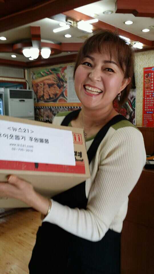 지난 4일, 뉴스21은 두 자녀를 두고 생활비를 벌기위해 거의 하루도 쉬지 않고 일하고 있지만 언제나 밝은 미소를 잃지 않으시는 아주머니에게 라면1박스를 전달했다.