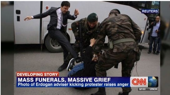 터키 탄광사고가 발생한지 4일째 접어든 가운데 총리 보좌관인 유수프 예르켈이 시위대를 폭행하여 논란이 되고있다.