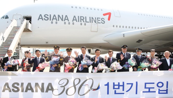 이날 금호아시아나그룹 박삼구 회장, 아시아나항공 김수천 사장, 주한 프랑스 제롬 파스키에(Jerome Pasquier) 대사 등이 참석한 가운데 아시아나 A380 1호기의 도입을 환영하는 꽃다발 증정행사가 진행되었으며, ‘아시아나380 스페셜 에디션’으로 명명된 아시아나 A380의 내부시설 및 인테리어를 공개하는 시간을 가졌다.