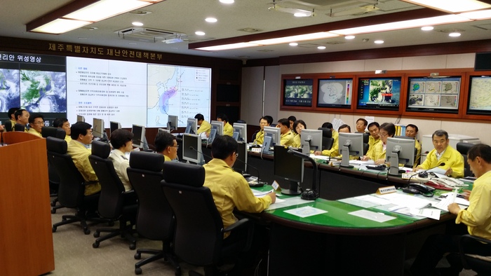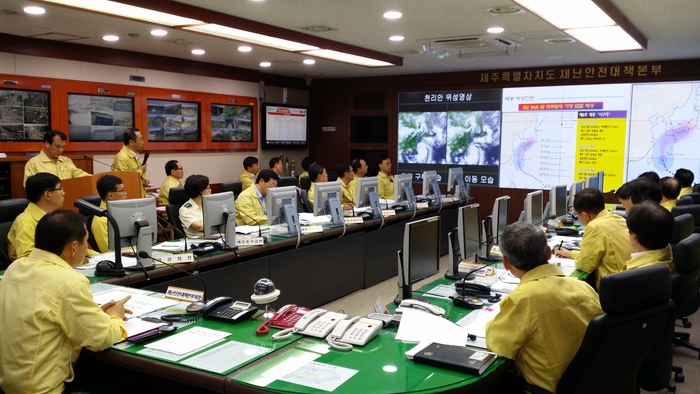 제주특별자치도는 8일 오전 9시 15분에 재난안전상황실에서 제8호 태풍“너구리” 북상에 따른 자연재난관리 협업기능 부서 각 실․국장, 유관기관이 참여하는'제주특별자치도 재난안전대책본부'상황판단회의를 개최했다.