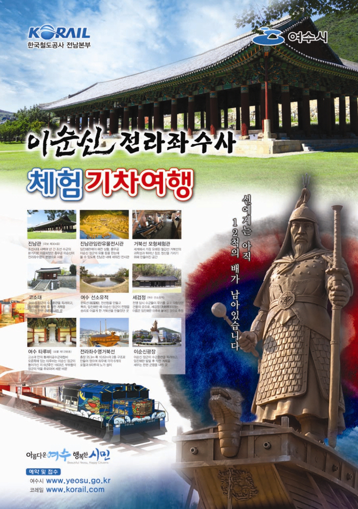 ▲ 1 選. 이순신 전라좌수사 체험기차여행 : 전라좌수영 본영을 중심으로 한 이순신 장군 유적탐방, 거북선 모양의 기차를 타고 와 여수에서 1일 전라좌수사가 되어 애국심과 효심을 배우는 코스다.
