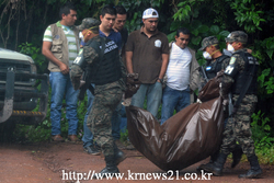 2014년 11월 19일, 온두라스 수도 테구시갈파(Tegucigalpa)에서 북동쪽으로 200km정도 떨어진 산타바바라의 Aguagua 강 인근에서 군인들이 미스 온두라스 마리아 호세 알바라도와 자매 소피아의 시신을 옮기고 있다. 경찰은 수요일(현지시간) 자매의 시신이 강변에 버려져 있는 것을 발견했으며, 소피아의 남자친구가 그들을 살해한 혐의를 받고있다고 전했다.