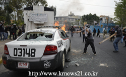 마스크를 쓴 시위자들이 타이어를 불태우고 화염병을 던지며 경찰관들을 향해 폭죽을 발사하기위해 튜브로 임시 바주카포를 만들어, 시위대를 해산시키기 위해 최루탄을 발사하는 경찰들과 맞섰다.
