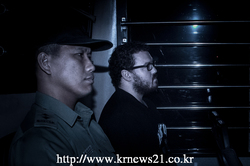 2명의 여성을 살해한 혐의를 받고 있는 영국인 은행가 루릭 주팅(Rurik Jutting, 가운데)가 2014년 11월 24일, 죄수 호송차를 타고 홍콩 동부 법원에 도착하고 있다. 그는 2명의 젊은 여성을 끔찍하게 살해한 혐의로 기소되어 재판 전 심리를 위해 다시 법정으로 돌아왔다.