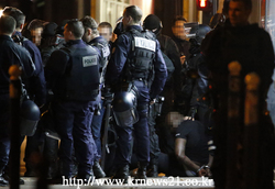 프랑스 파리 샹젤리제 거리에 있는 까르띠에 매장에서 보석을 훔친 혐의를 받고있는 2명의 강도 중 1명이 15구역에서 경찰에 붙잡힌 후 길 위에 앉아있다.