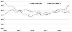 현재의 경기상황을 보여주는 동행종합지수 순환변동치는 전달보다 0.3포인트 하락했으나, 앞으로의 경기국면을 예고하는 선행종합지수 순환변동치는 0.3포인트 상승했다.
