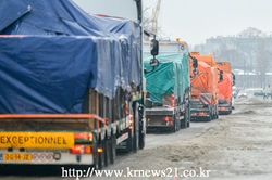 2014년 12월 8일, 4대의 대형트럭이 말레이시아 항공 MH-17기의 잔해를 싣고 우크라이나 하르키우의 기차역의 화물 터미널을 떠나고 있다. 네덜란드 전문가들이 말레이시아 항공 여객기의 잔해를 네덜란드로 보내는 작업을 마쳤다.