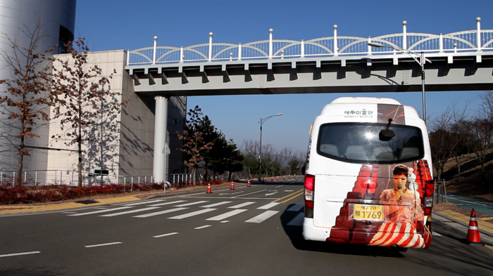 대구미술관은 12일 이곳에서 셔틀버스와 물병 등으로 현장검증을 하고 제주도의 ‘도깨비 도로'처럼 오르막을 거슬러 올라가는 듯한 착각을 일으키는 도로라고 밝혔다.