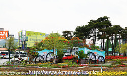 가정의달 5월의 시작과 함께 5일까지 개최되는 제17회 담양대나무축제를 위해 담양읍 중앙로 회전교차로에 조성된 꽃밭과 꽃마차가 관광객들을 맞이한다.