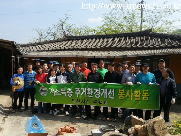 익산시청 주택과 직원 30여명은 5월 2일(토), 휴일을 이용하여 금마면 소재 저소득 가정의 쾌적한 주거환경 조성을 위해 봉사활동을 실시하였다.