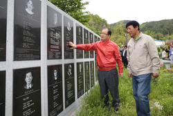 시와숲길공원에서 일행은 공원을 조성한 이양우(한국육필문예보전회 이사장)씨의 설명과 함께 항일민족시인 추모 분향단, 한국현대문학100주년 기념탑, 120여기의 문학비 등을 둘러보며 문학과 숲길이 어우러진 공원을 탐방했다.