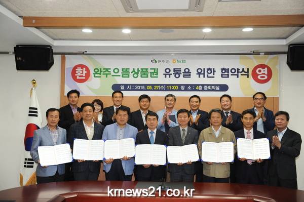 지역상권 보호와 지역경제 활성화를 위해 도입된 ‘완주 으뜸상품권’ 유통이 더욱 활성화될 전망이다. 완주군은 27일 완주 으뜸상품권의 유통으로 지역경제 활성화를 꾀하고자 농협은행 전주완주시군지부와 관내 10개 지역 농업협동조합과 업무협약(M0U)을 체결했다.
