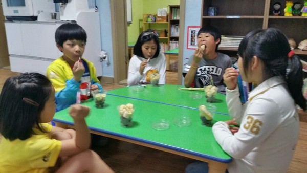 지역아동센터에서는 아동별 과일섭취 행태 및 양을 체크하여 보건소에 보고하고, 보건소에서는 아동들이 과일 섭취를 늘려갈 수 있도록 영양교육을 병행한다.
