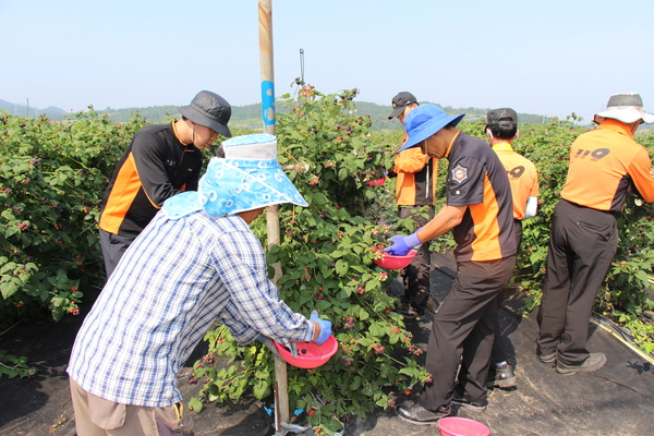 정읍소방서(서장 안준식)는 지난 6월 18일(목) 정읍시 북면에 위치한 신성마을의 한 복분자 농가를 방문해 봉사활동을 펼쳤다. 최근 중동호흡기증후군(Mers-CoV)발병에 따른 일손부족으로 인력확보가 어려워 실질적인 도움을 주고자 적극 지원에 나선 것이다.