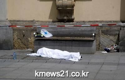 ▲ 오스트리아에서 인도 돌진 차량 사고로 시신이 천에 덮혀있다. ⓒAFP오스트리아 그라츠에서 한 남성이 인도로 돌진해 3명이 숨져 숨진 시신에 천이 덮혀져 있다.