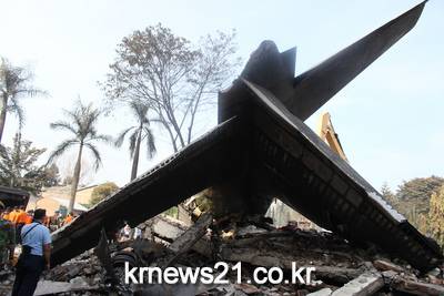 ▲ 인도네시아 군수송기 추락 현장 ⓒAFP인도네시아 북수마트라 메단의 군수송기 허큘리스 C-130이 추락 현장 모습이다.