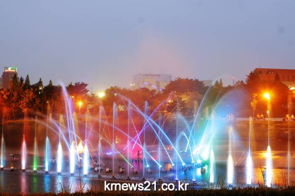 넓은 공원에 울려퍼지는 음악에 맞춰 하늘 높이 솟구치는 물줄기의 향연은 한 여름 더위를 이기기에 충분한 시원함이 있다. 가슴이‘뻥’뚫리는 기분이다.