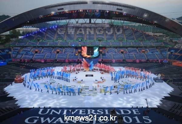 ▲ 광주유니버시아드주경기장에서 개박식 행사를 하고 있다.2015 광주하계유니버시아드가 성대한 막을 올려 12일간의 열전에 들어갔다.