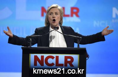 ▲ 2016년 차기 대통령 후보인 민주당 힐러리 클린턴 ⓒAFP미국 미주리의 캔자스시티에서 열린 '라 라자' 회의에서 민주당 차기 대통령 후보인 힐러리 클린턴이 연설을 하고 있다.