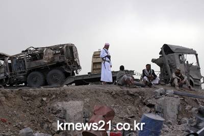 ▲ 예멘 반군이 사우디 연합군 전략지를 장악했다. ⓒAFP예멘 수도 사나에서 후티 반군이 사우디 주도 연합군의 파업 현장에 모여있다.