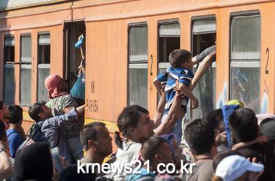 그리스와 마케도니아 국경 지역인 마케도니아의 제브젤리아역에서 세르비아로 가기 위한 기차에 타려는 이주자들로 붐비고 있다.