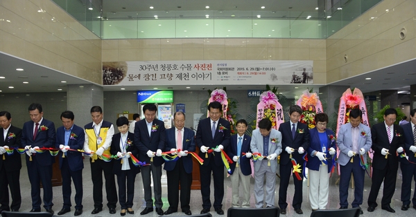 ▲  지난 6월29일 30주년 청풍호 수몰 사진전이 국회의원회관 1층로비에서 있었다.27일 제천시에 따르면 국회와 서울시청의 사진전을 마치고 청풍리조트 힐하우스(구 힐호텔)에서 갖는 사진전은 2016 올해의 관광도시와 제천 관광사진을 함께 전시 현재의 아름다운 제천의 모습도 볼 수 있는 기회를 마련했다.
