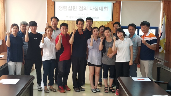 충북 충주국유림관리소(소장 김대훈)는 청렴 취약시기인 하계 휴가철을 맞아 8월 4일(화) 회의실에서 전 직원이 참석한 가운데 공직자 청렴실천 결의대회를 갖고, 규제개혁 과제 발굴 및 산림행정3.0 교육을 실시하였다.