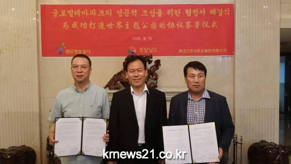 투자 협의에 이어, 진해 웅동지구의 토지소유자인 경남개발공사(박재기 사장)와 분마그룹( 장현운 회장) 간 진해글로벌테마파크 조성사업에 대한 상호협력 협정서도 체결했다