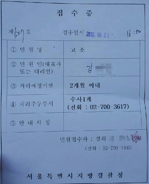 ▲ 지난 21일 오후 4시50분께 수행원 역할을 한 김모씨가 서울지방경찰청 민원실에 고소장을 제출 하엿다.