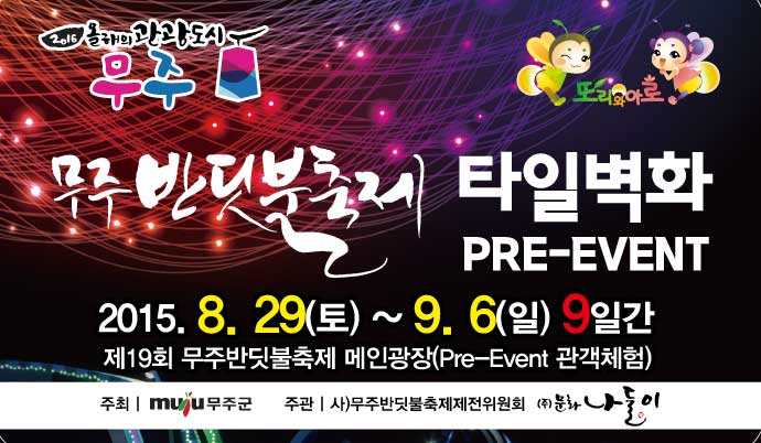 무주군청 관계자는 “이번 타일벽화 Pre-event가 제19회 무주반딧불축제를 찾는 관광객들에게 좋은 추억거리가 되기를 바라며, 2016년 무주를 찾는 관광객들이 더욱 증가 하기를 바란다”고 밝혔다.