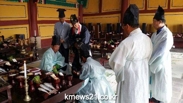 이번 추기 석전대제는 문묘배례, 윤리선언문 낭독 등을 통해 인의예지에 근거한 문화인임을 자부하고 윤리실천과 미풍양속 계승에 앞장설 것을 다짐하는 1부 일반의식과 공자를 비롯한 중국 5성과 우리나라 22현의 위패가 모셔진 대성전 제단위에 향을 피우고 폐백을 올리는 2부 석전봉행으로 진행됐다.