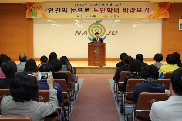 나주시는 27일 나주시청 회의실에서 ‘안티에이징 시대, 노인의 권리를 시작하다’를 주제로 노인인권과 노인학대 예방 교육을 실시했다.