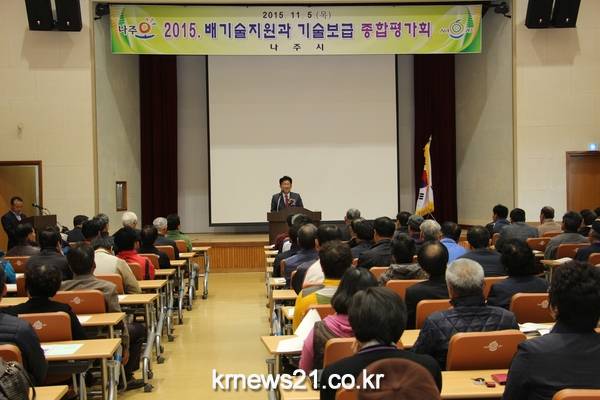 나주시는 5일 농업기술보급 시범농가 등 농업인 150여명이 참석한 가운데 2015년도 기술보급 시범사업과 시책사업에 대한 종합평가회를 개최하였다. <</span>사진>