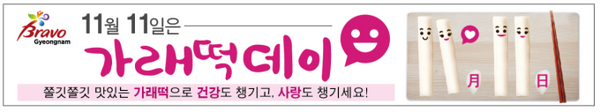 경남도는 ˝가래떡데이˝ 행사를 도청 구내식당에서 11월 9일 점심시간 개최한다.