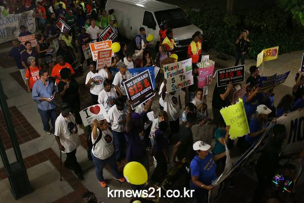 이에 미국 전역에서 패스트푸드 업계 종사자들을 주축으로 최저 시급을 15달러로 인상해달라는 대규모 시위가 벌어졌다. 이번 시위는 뉴욕, LA 등 미국 300여개의 도시에서 일제히 열렸다.
