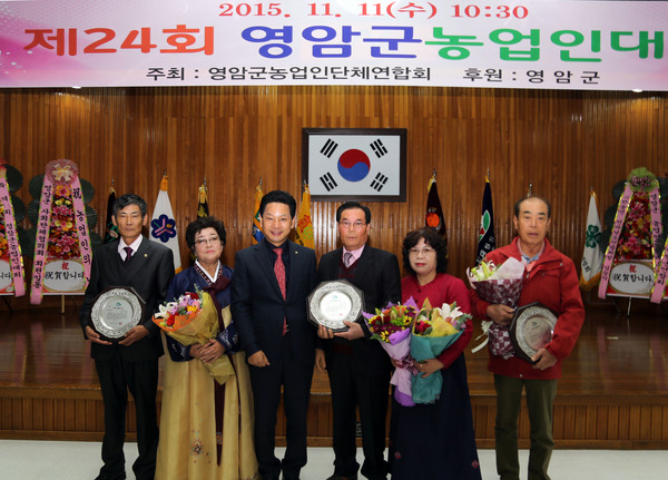 농업인 시상으로는 영암농산물의 위상을 높인 으뜸농업인 상에 경종 분야 박찬, 최종숙 부부(덕진면), 원예 분야 남기호, 이명님 부부(서호면), 축산 분야 김일중, 김동순 부부(학산면) 등이 수상하였고, 농업인대회 상은 영암읍 문태근, 삼호읍 김종선, 등 11명이, 우수회원인 박중구, 생활개선회 이용애 등 9명은 군의회 의장상을 수상했다.